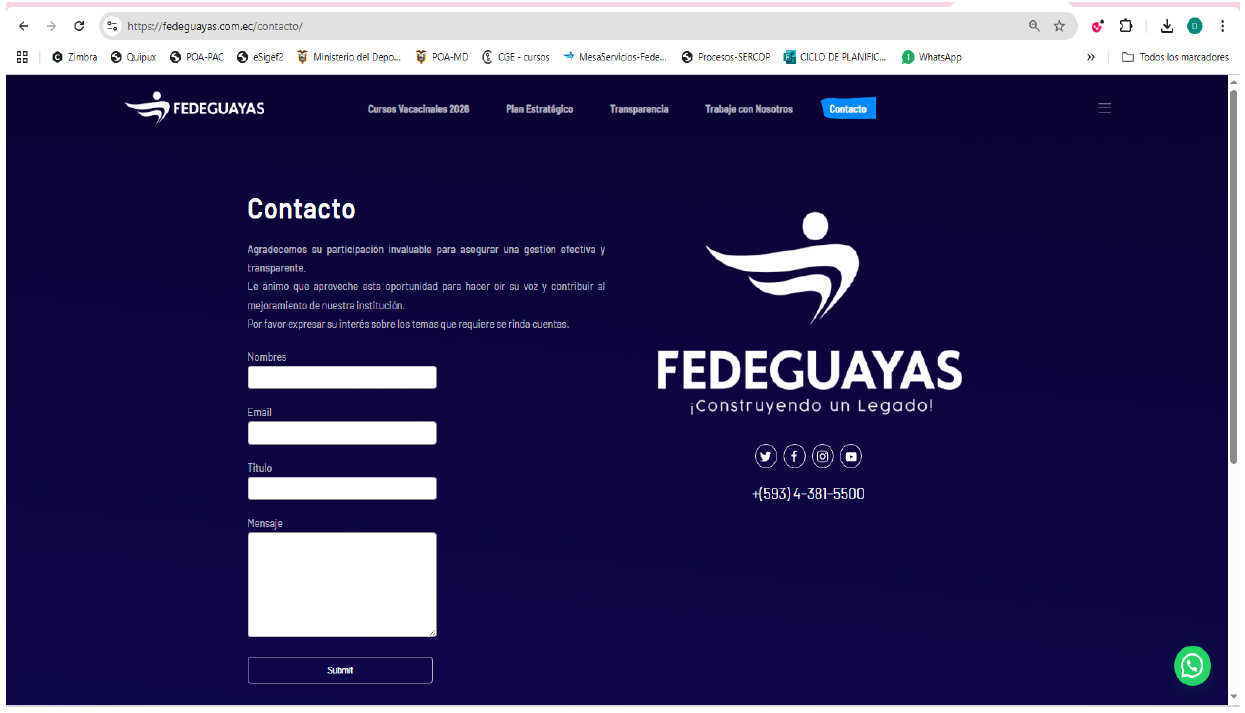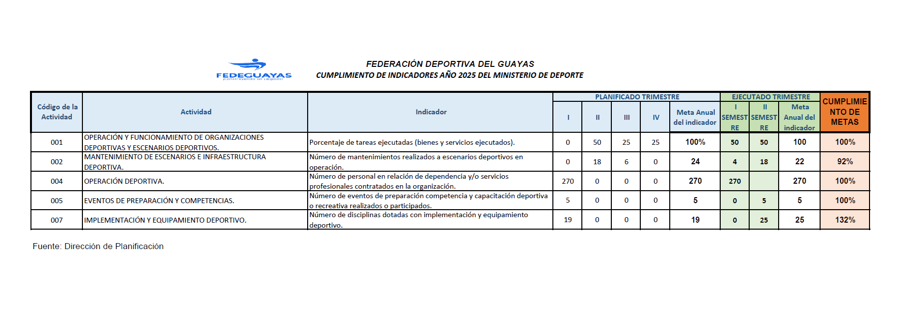 La Dirección de Regulación y Evaluación del Deporte del Viceministerio del Deporte, solicita el informe de ejecución de la Planificación Operativa Anual e informe de la gestión presupuestaria acorde a la Ley Orgánica del Deporte, la Educación Física y la Recreación en su art. 68 . La evaluación del primer semestre POA 2025 fue cargada en la plataforma PAAD del Viceministerio del Deporte. Adicionalmente, la información remitida al Viceministerio del Deporte se publica en la plataforma de Fedeguayas, en el menú de transparencia.
