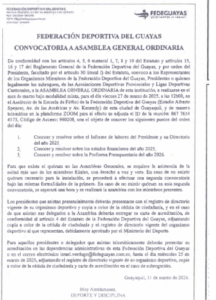 La Federación Deportiva del Guayas, en cumplimiento con lo determinado en el numeral 2 del artículo 208, en concordancia con el artículo 225 de la Constitución de la República del Ecuador, artículo 90 de la Ley de Participación Ciudadana y el artículo 11 de la Ley Orgánica del Consejo de Participación Ciudadana y Control Social.